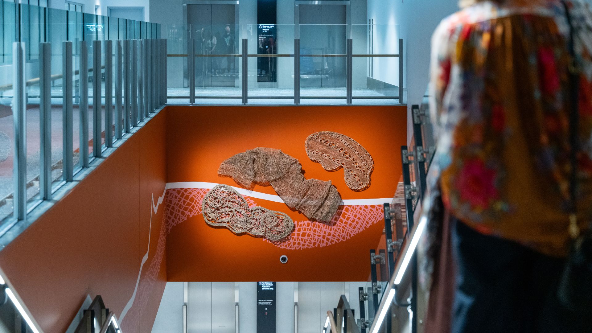Located in our International Arrivals Hall, this sculpture and immersive artwork was created by Casino Wake Up Time, a collective of Bundjalung and Kamilaroi women who have gathered for more than ten years to share stories and create intricate weavings.